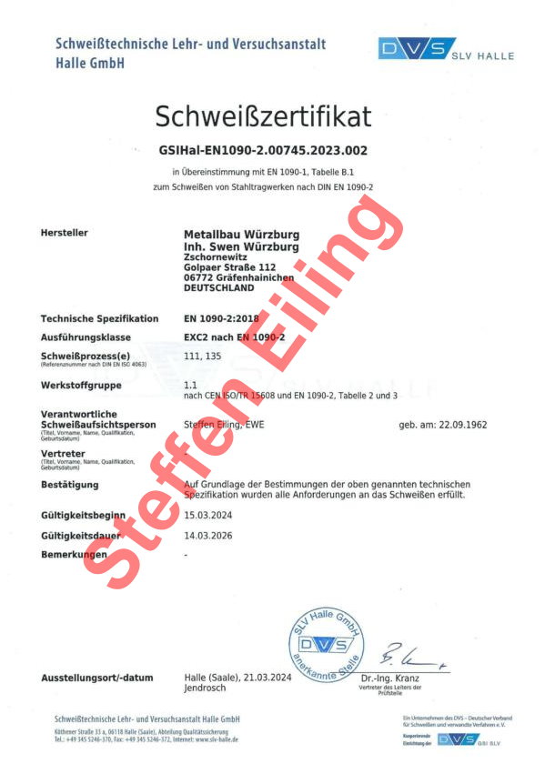 aktuell betreue ich seit April 2024 die Fa. Metallbau Würzburg in Zschornewitz