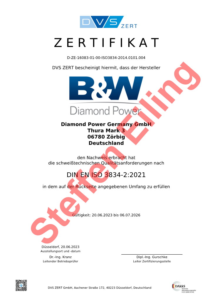 Seit 2013 betreue ich aktuell die Fa. Babcock & Wilcox - Diamond Power Germany